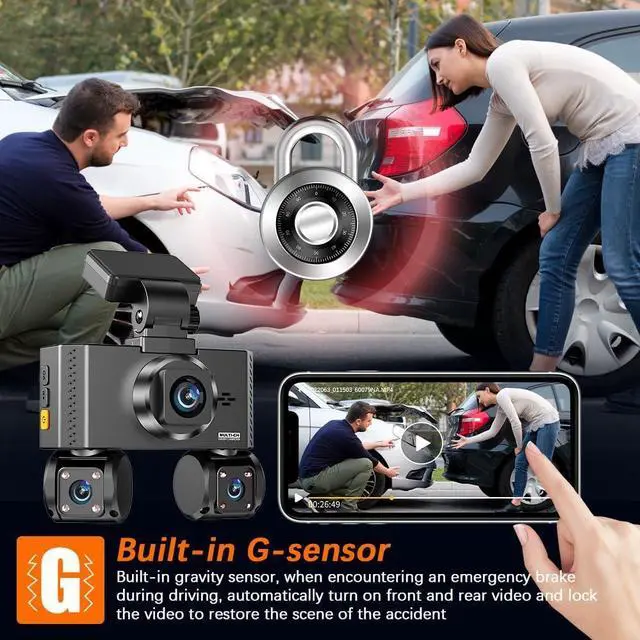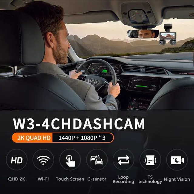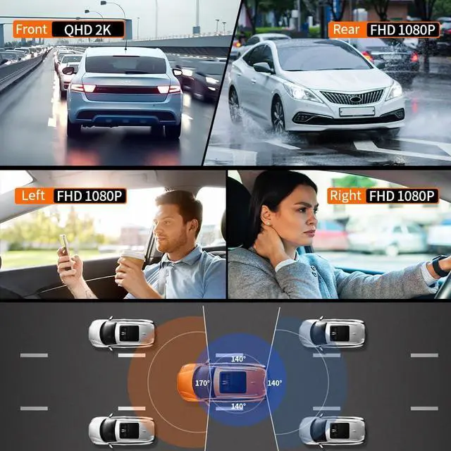 4 Channel 360° Dash CamPahaa 2K front+1080Px3 left, right and rear resolutions Mini Dash Cam will provide you with 170°+140°x3 super wide-angle field of view, left and right cameras can be rotated to adjust the angle to ensure 360° all-around protection captures every detail.
