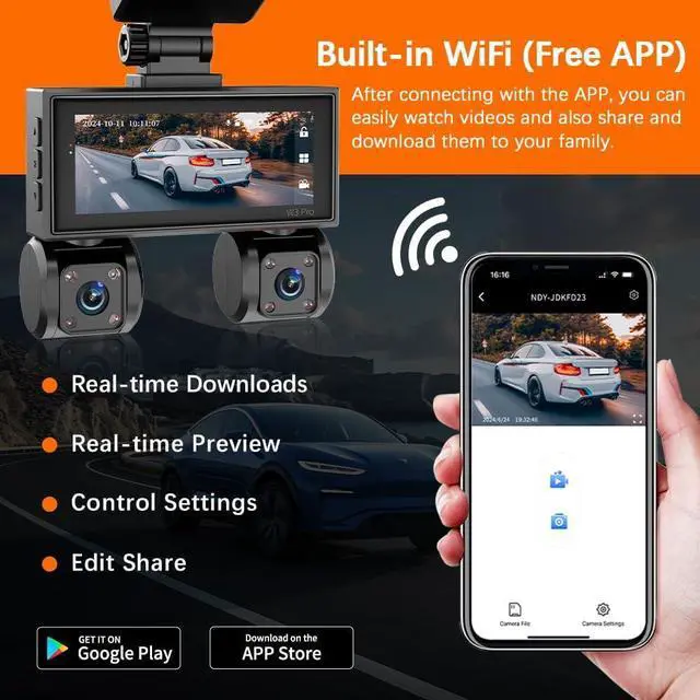 Built-in WiFi Dash CamCar camera built-in WiFi function provides the recorded video can also be seen on the smartphone app.