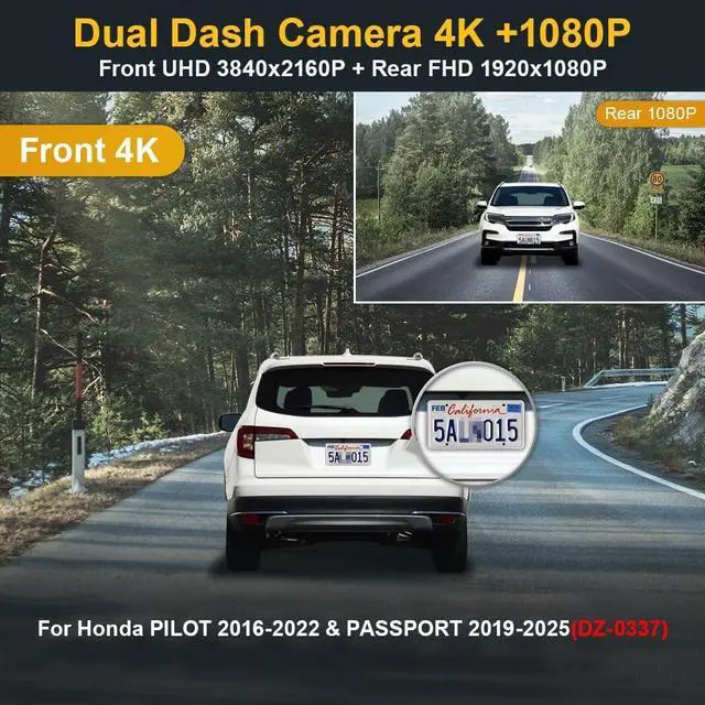 Front 2160P+Rear 1080P Video: Fitcamx OEM Style dash cam can simultaneously record front 2160P and rear 1080P video at 30fps. Equipped with f/ 1.6 large aperture, this camera has decent picture quality and image clarity. And WDR technology enables superior night vision even at night, displaying vivid moments on the road