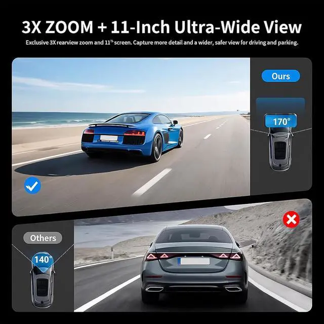 3X ZOOM + ULTRA-WIDE VIEW: Jomise 4K Mirror Dash Cam exclusive 3X rear zoom with a true ultra-wide view helps you park and drive with confidence ideal for tight spots, trailers, and blind zones