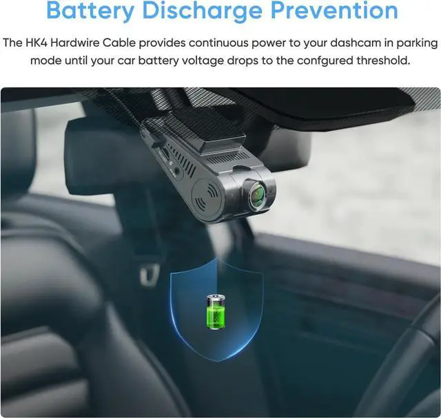 Low Voltage ProtectionHK4 hardwire lets you set a voltage cut-off value with 4 options, when the voltage of vehicles battery drops to the cut-off value, it will stop powering your dashcam, thus protecting your battery from discharge.