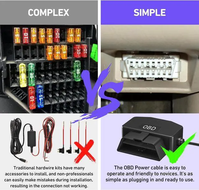 Easy Installation Type C OBD Power Cable for Dash Camera- Installing this obd port power adapter is a breeze. All you have to do is simply plug it into your car' s OBD connector. After that, check to make sure the obd2 type c power adapter for dash cam can supply power to your dashcam properly. Then, just tuck away the extra wire. unlike other complex hardwire kits, you need to deal with fusebox and battery electricity. But this universal obd power cable for dash camera is really user-friendly