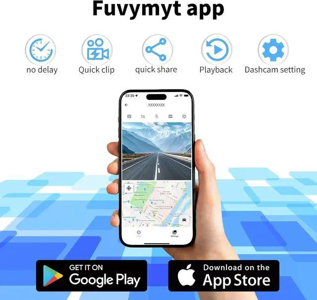 [Easy Installation & Free app] The FUVYMYT dash cam has a simple installation that doesn' t need to be rewired. With the fuvymyt app, which is designed for the FUVYMYT dash cam, you can get a faster connection speed and lower latency for living. Sharing and editing features make sharing beauty easy along the way.