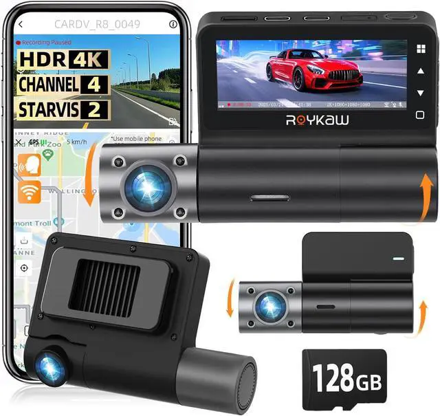512GB Storage & Rotatable Lenses for the camera for car: Adjust all lenses of this dash cam front and rear for custom framing. This 4 channel dash cam supports 512GB microSD cards (sold separately). We provide you with a 128 GB SD card, so you can use the dash cam immediately upon receipt without needing to purchase an SD card separately.