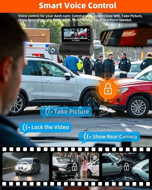 Smart Voice Control for this car camera dash cam front and rear: This intuitive dash cam supports multiple languages and allows simple voice commands like taking photos or turning on/off, so you can keep your eyes on the road without distraction a must-have feature for any high-quality camera for car.