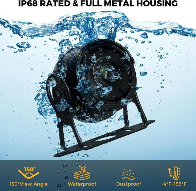 AHD 1080P Reverse Rear View CameraThis HD 1080P rear view camera delivers excellent picture quality and displays stunningly brilliant night vision even in low light at night. It' s IP68 rated for water and dust resistance and has an all-metal body. This means it can handle anything you throw at it, perfectly suited for all environments, from -4° to 139°F! Plus, it' s wired, so you can be sure it' ll maintain stable signal transmission at all times. This is your best driving assistant yet!