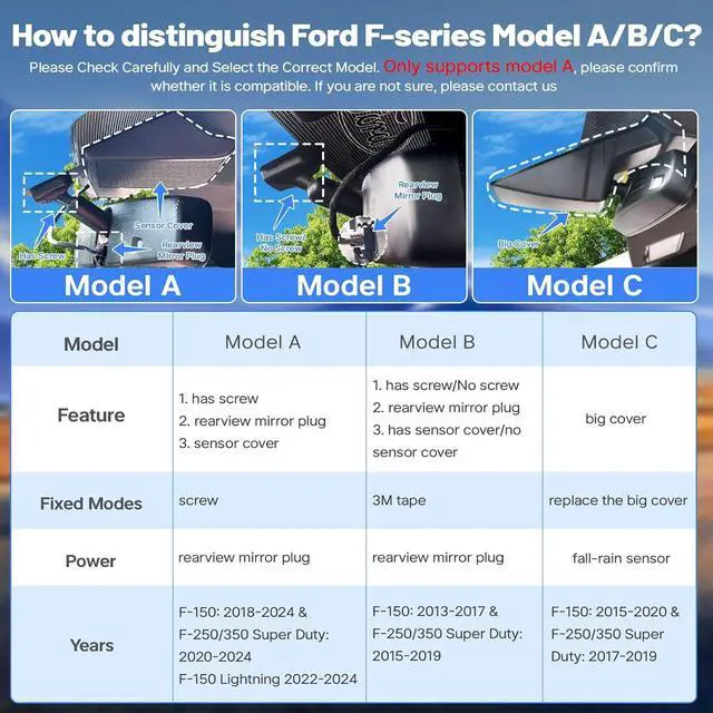For Ford F150 & F250 2018-2025 KuTaiTai 4K dual dash cam is OEM-style installation! No messy wiring exposed, no complicated rewire at all, it' s easy to install, plug and play! Specifically designed for Ford F150 2018-2025 F250/F350 Super Duty 2020-2025 Select XL, Limited, XLT, Lariat, Platinum, Raptor, King Ranch Tremor (Model A).