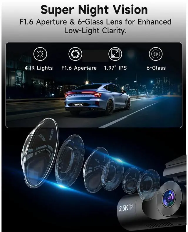 Compact Design: Small, discreet dash cam with a 1.97" IPS screen that blends seamlessly into your car interior without blocking your view and installs quickly with flexible mounting options.