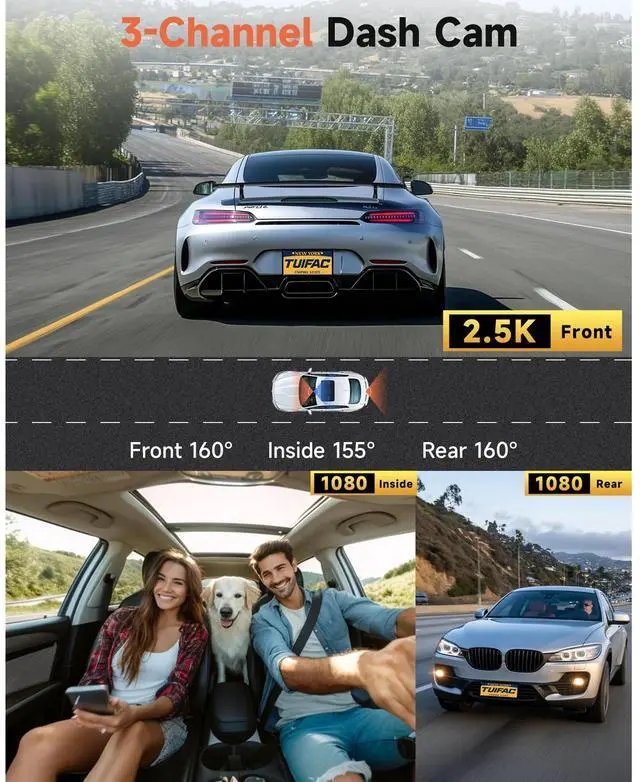 Triple Lens Coverage: Capture every angle with 2.5K front, 1080P interior, and 1080P rear views, providing full vehicle protection for rideshare drivers, families, or daily commuters.