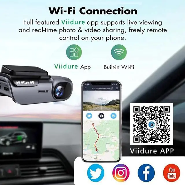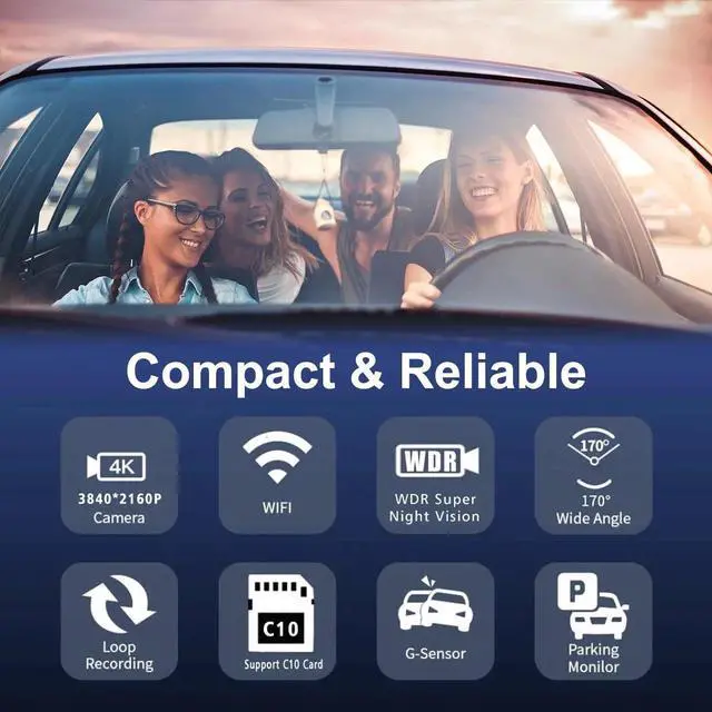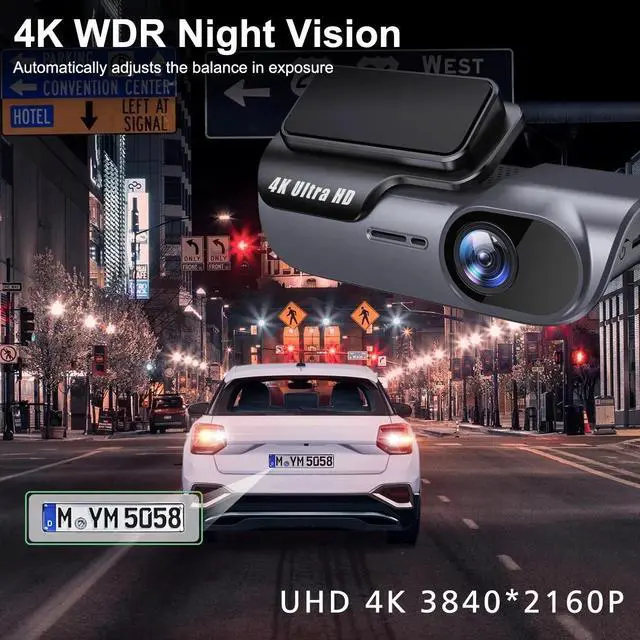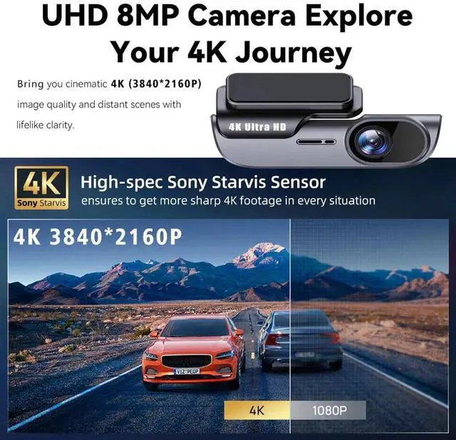 4K 3840*2160P Camera, Auto On/Off, Built-in WIFI, Dual Lens, DVR