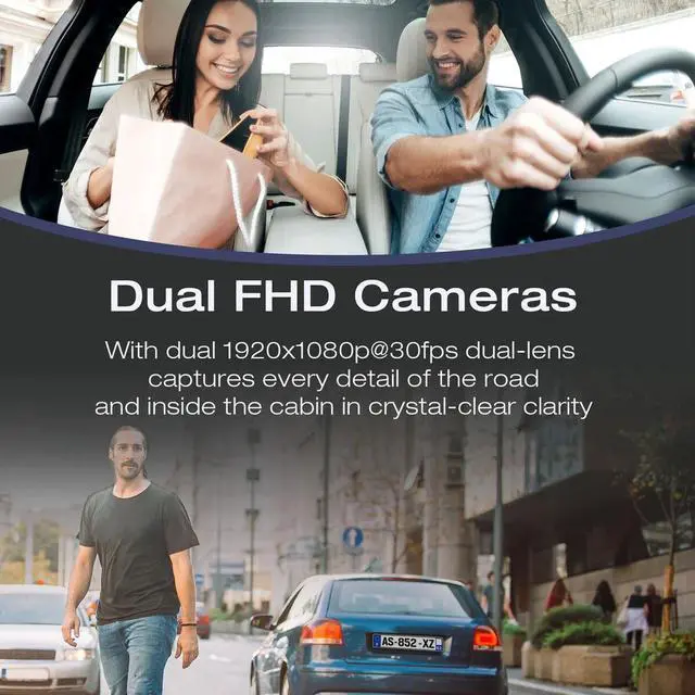 FHD 1080P Dual Lens Dash CamWith a 1.5-inch LCD screen, the 6-glass HD dual lens dash cam simultaneously records front and inside at 1920x1080P with 30fps, which provides sharp high-quality videos/images and powerful evidence in case of an accident. Perfect for Uber/Taxi/Rideshare drivers or people who need to record both scenery and happy time with your families.