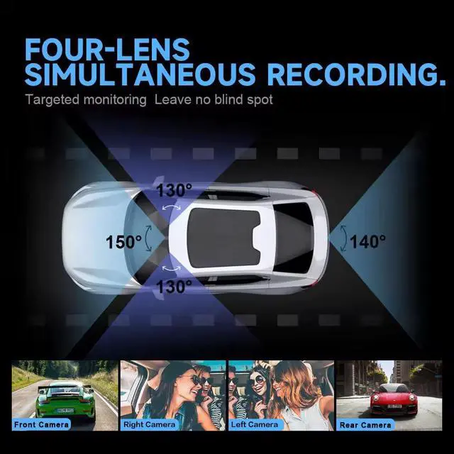 Introducing the SSS-CAR E4 4-Channel Dash Cam, your ultimate co-pilot for comprehensive road and vehicle security. Engineered to provide a complete 360-degree visual record, this advanced system goes beyond standard front-facing cameras to monitor the front, interior cabin, and both sides simultaneously. Whether navigating daily commutes, ridesharing, or long trips, the E4 ensures you have a detailed, reliable account of your journey.