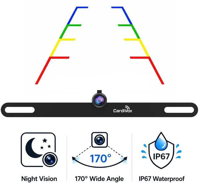 Upgrade your vehicles safety with the CardiVox Ultra HD Backup Camera. Designed for clear rear visibility, this 1080P license plate camera features a 170° wide-angle lens, night vision for low-light conditions, and a waterproof design built to withstand all weather. Easy to install and compatible with most vehicles, it helps you park with confidence and avoid blind spots.