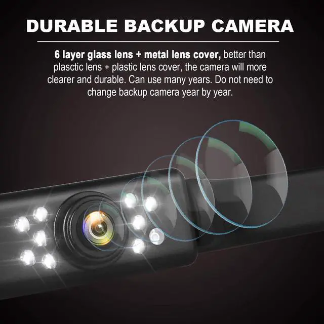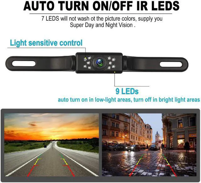 Super HD Day & Night Vision: Our HD Reverse Camera features upgraded chips and a glass lens, providing true HD color and real-time images in both day and night. The 9 LED lights will automatically turn off in bright light areas.