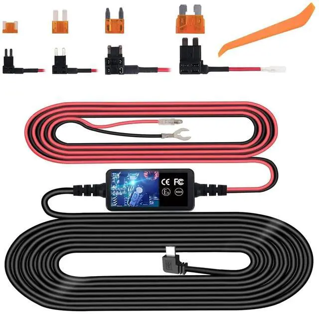 Hardwire Kit, Type-C Hard Wire Kit, USB C Hard Wire Kit Fuse for Dashcam, 12V-24V to 5V Car Dash Camera Charger Power Cord, Gift 4 Fuse Tap Cable and Installation Tool (11.5ft)