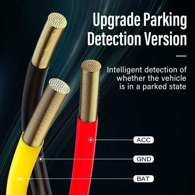 3-Wire Professional Kit - Includes Red (Constant Power for 24/7 parking mode), Yellow (ACC detection for auto on/off), and Black (Ground) wires. Enables full parking surveillance and seamless power management by connecting directly to your car's fuse box.