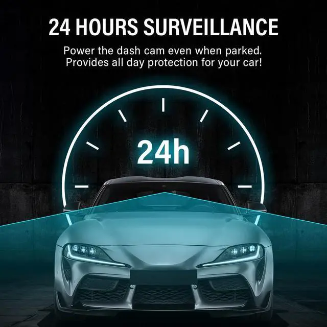 24-Hours Power On - To assist the parking monitoring function of dash cam, this hardwire kit will power on your dash cam while parked, providing 24 hours of complete protection for your car.