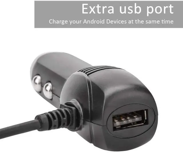• Universal in-car charger with USB port, mini USB connector, and a convenient 11.5FT/3.5M cable for easy layout and use.