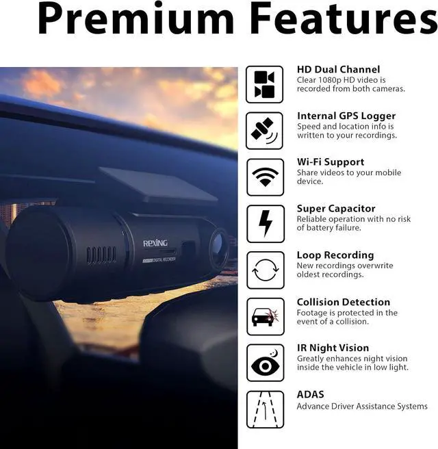 WI-FI CONNECT: View, save, and share dash cam recordings wirelessly on your mobile device with the use of the free Rexing Connect app, available now for iOS and Android devices. With Optional GPS Logger allows you to mark time, date, location, and speed information to your recordings.