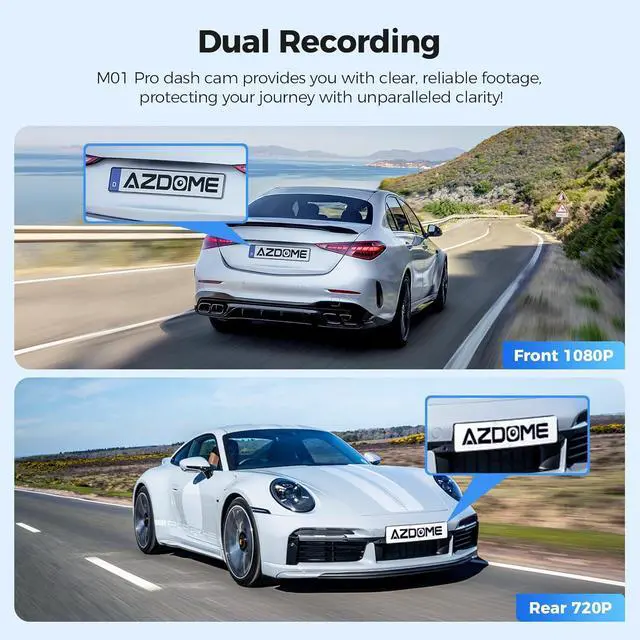 Fatigue Driving Reminder: AZDOME M01 Pro dual dash cam provides fatigue driving reminder. Regular reminders could reduce risk of excessive driving time.