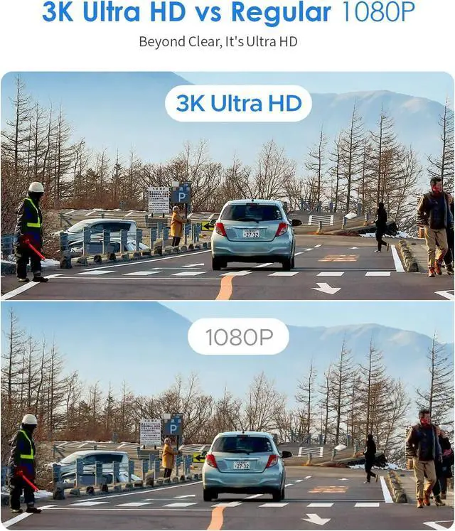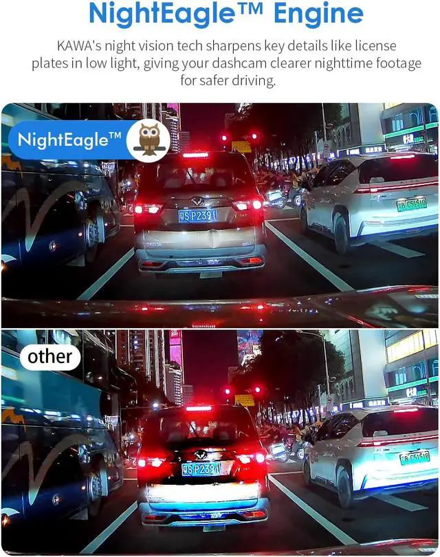 Enhance 2K 1440P & Wide AngleKAWA wifi dash cam features a super-high resolution of 1440P (2 times clearer than most 1080P dash cams), capturing license plates, road signs, pedestrians, and other details on the road. With 145°wide-angle, this dash cam enables you to monitor more lanes without blind spots.