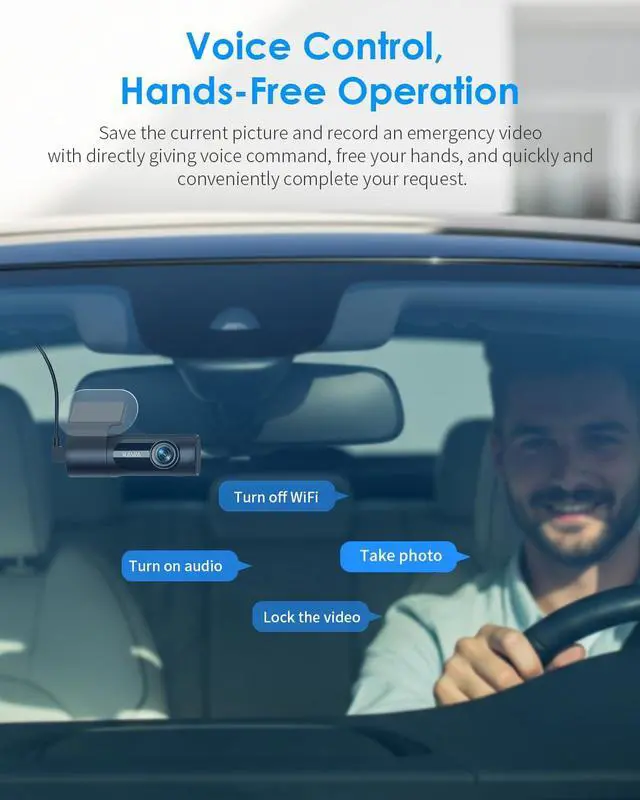 Hands-Free Voice Control This dashcams for cars saves the current picture and record an emergency video by directly giving voice commands. Hands-free voice control allows you to focus more on driving safety and quickly complete your request.
