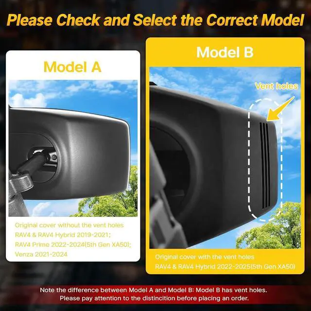 YOU MUST KOWN Please cheak your model carefully, the wrong model cannot be installed successfully. Seriously compare ' The Model Comparison Pictures' (only supports original cover with vent holes). If you are still not sure which model is suitable for your vehicle style, please take a photo of your original car sensor cover and send it to us, and we will confirm it for you.