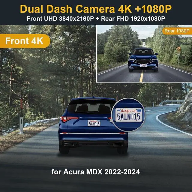 Dual 2160P+1080P HD Video: Fitcamx integrated dash cam offers 2 channel recording, which can records high clarity video at front 2160P and rear 1080P. Equipped with f/ 1.6 large arpeture+CMOS sensor+WDR technlogy, this camera ensures superior video quality, and you can see broader field of vision effectively even at night