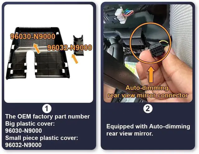 *How to make sure you choose the correct OEM model? First of all, confirm your vehicle style and year of manufactured. e. g 2025 Hyundai Santa Cruz SE. Second, please confirm whether your car has Auto-Dimming. You can also reach Fitcamx via on-line message before ordering (*No parking mode, extra harness is required for this function)