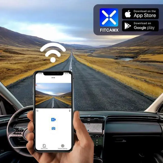 Easy to Set & WiFi: By connecting with the built-in WiFi, you can view real time video while on the way, and FITCAMX APP enables you to download important footage to your phone if needed. *NO NEED to keep WiFi connected as the camera will auto-record after car starts, No affect the use of CarPlay/Android Auto