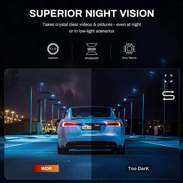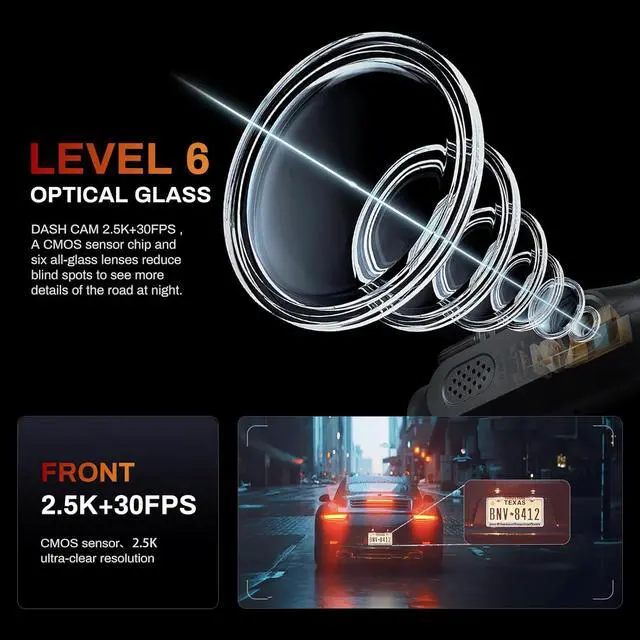 Premium Night Vision: This Dashcam adopts an excellent optical lens with an ultra-large F 1.5 aperture and 6 layer glass, and equipped with HDR/WDR technology to capture important details clearly under low light conditions