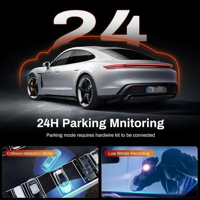 24-hour Parking Monitoring: Kolvt Car dashboard camera offers G-Sensor Parking Mode that automatically record when it detects any impacts or sudden motion while vehicles is parked. Time Lapse Parking Mode continuous surveillance by offering a condensed overview of any events that may occur during extended parking periods. Please note that the parking monitoring function requires a separate hardwire kit