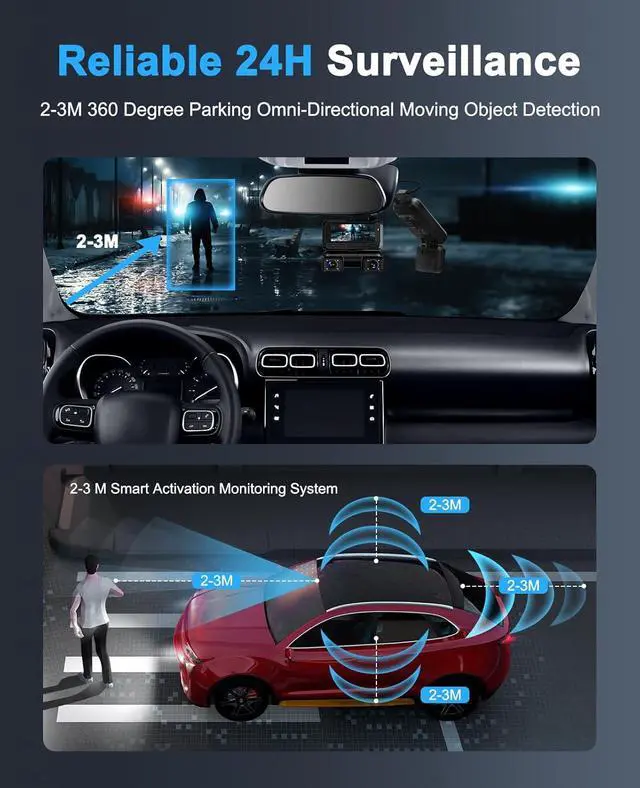 360° Radar Intelligent Monitoring SystemEquipped with dual radar chips, one facing the front of the vehicle and one facing the rear. After the car engine is turned off, the radar can detect the surroundings within 1- 1.5 meters range in all directions - front, rear, left, and right.