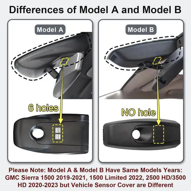Please NoteModel A & Model B Have Same Models Years: GMC Sierra 1500 2019-2021, 1500 Limited 2022, 2500 HD/3500 HD 2020-2023 but Vehicle Sensor Cover are Different, Please carefully look at 2nd and 3rd pictures, which are model comparison pictures