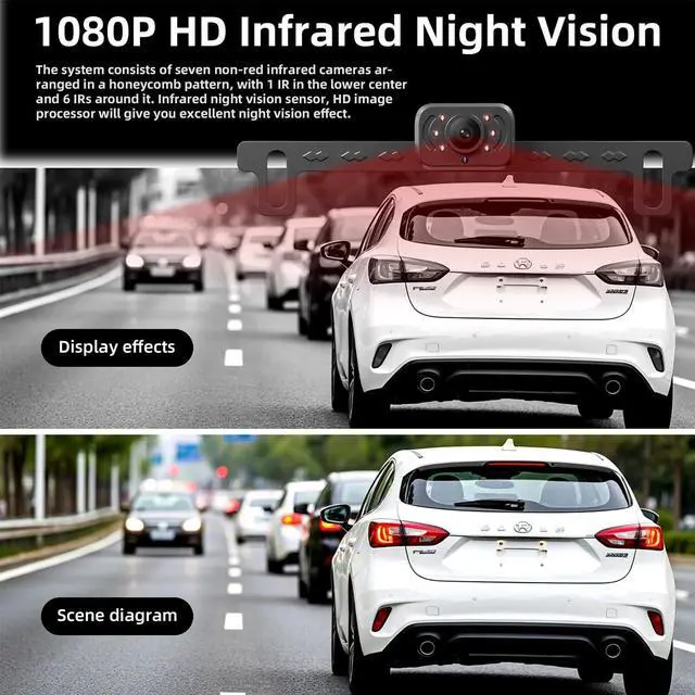 IR Night Vision -- IR night vision allows you to detect obstacles, pedestrians, or other vehicles that may be in your path, even when the surroundings are dark. The infrared light is so weak that do not produce any visible light or glare.