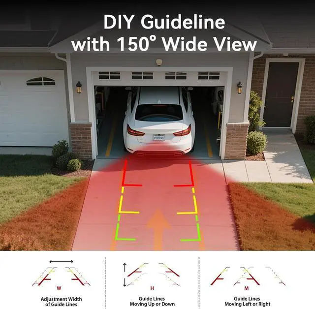 DIY Guide Line with Image Flip -- Adjustable parking lines allow you to customize the alignment based on your vehicles size and your driving habits, reducing the risk of hitting other vehicles or objects behind you.