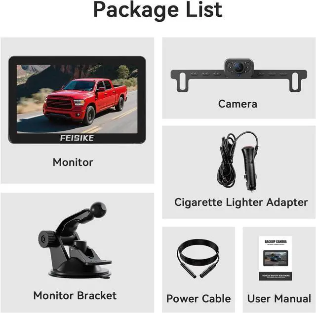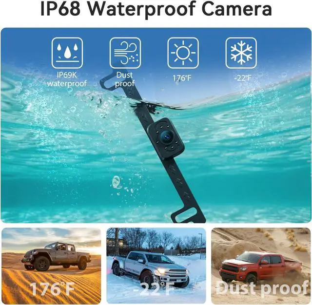Wide Compatibility -- backup camera monitor is specially designed for cars, pickups, SUVs, RVs, minivans, sedans, etc. IP68 waterproof standard makes it to work in bad weather, resistant to heat and cold weather. Brightness, contrast and saturation can be adjusted to customize the perfect visual experience.