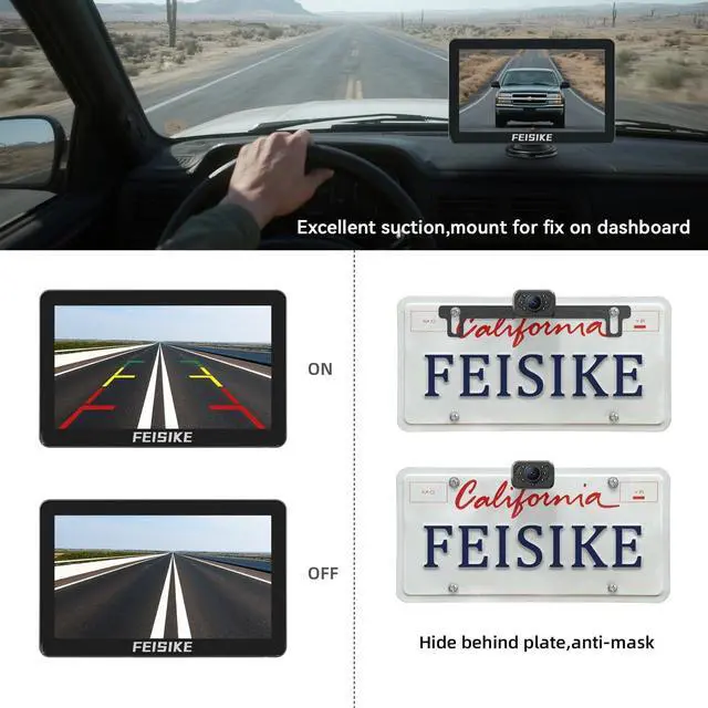 Effortless Installation -- the reverse camera and display are powered by the cigarette lighter adapter. Plug and Play. The screen could be mounted on the windshield or desktop, and camera could be hidden under the license plate.
