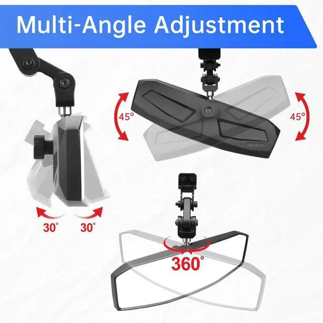 Multi-dimensional optimizationThis polaris ranger 1000 xp rear view mirror is designed with shatterproof and anti-glare features to prevent glass breakage and protect against injury, while maintaining clear visibility even under bright light conditions. It features a sturdy, durable, and corrosion-resistant aluminum alloy bracket and an impact-resistant ABS shell, ensuring stability and durability even on bumpy roads. Multi-angle and multi-direction can be adjusted at will. The mirror is weatherproof, with the housing remaining as shiny as new. Installation is simple and hassle-free, with all necessary tools included.