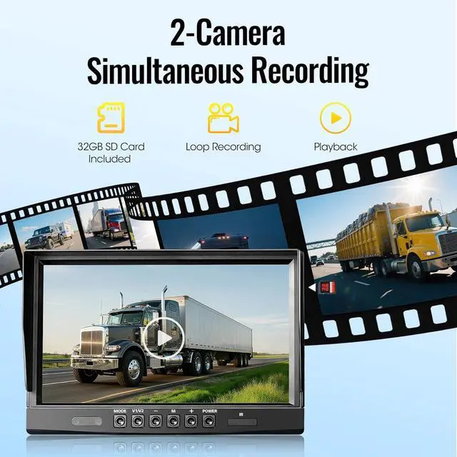 Intelligent Loop Recording & Playback System The 1080P full HD monitor delivers enhanced reversing safety with exceptionally clear video imaging. Its automated loop recording feature continuously captures driving footage, providing reliable video documentation when needed. All recordings can be immediately accessed and played back directly through the display interface. *(Includes a 32GB SD card for immediate plug-and-play use; supports memory cards up to 128GB in capacity. )*