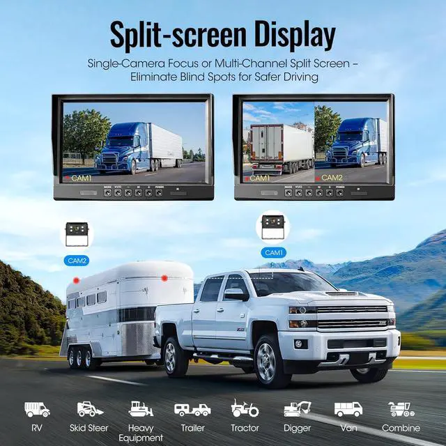 2026 Upgraded AHD1080P Backup Camera SystemBuilt for rigorous conditions, this heavy-duty camera' s all-metal housing withstands 20G vibrations and performs reliably across a wide temperature range (-4°F to 158°F). This enables use across diverse applications: commercial vehicles (buses, RVs, UTVs, etc. ), construction equipment (skid steers, excavators, forklifts, concrete mixers), and agricultural machinery (tractors, combines, sprayers, logging trucks).