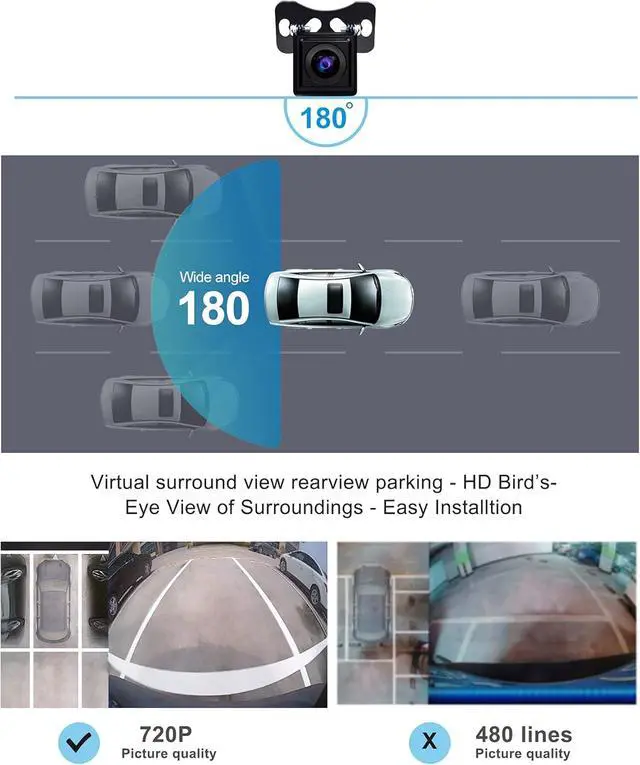 HD 720P Rear-view Backup Parking Assist Camera puts out 720P HD video signals. The special wiring design and system firmware allow users to have a live rearview even when the vehicle is moving forward, avoiding obstructions caused by passengers, headrests and the vehicles roof & rear pillars, expanding the field of view, offering the driver an unimpeded view of the lanes behind and eliminating traditional blind spots.