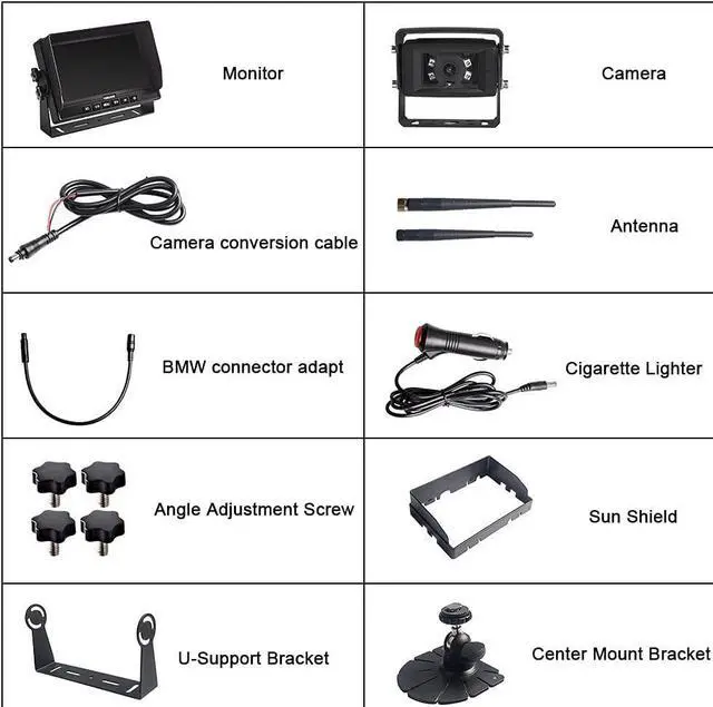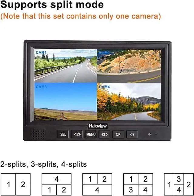10-32V wide voltage input, Support 4 wireless camera input, 120° wide viewing angle, Wireless Line of Sight Range Up to 984 feet (This kit include 1 monitor+ 1 camera)