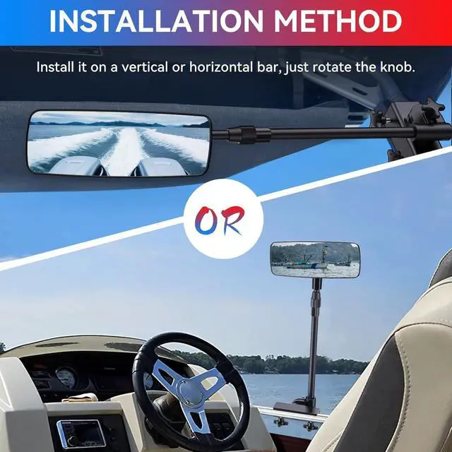 [ Easy To Install & Widely Applicable ] Tewgug marine mirror can be installed on any location such as a boat rail or a pole without drilling holes. You only need to adjust to the appropriate position and tighten the knob. This boat rear view mirror can be used for sea, ski boats, speedboats, boat mirror pontoons, water sports, boat surfing, etc