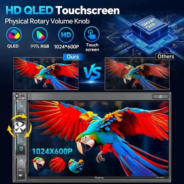 Vibrant QLED Display & HD Video The stunning QLED touchscreen supports 1920x1080P video playback, offering crystal-clear visuals for movies and media. The 1024x600P resolution ensures intuitive control and vivid colors, enhancing your in-car entertainment experience