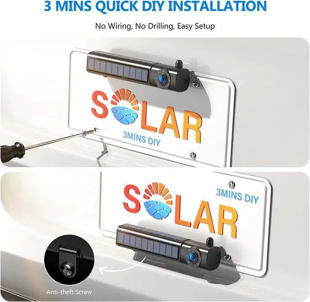 DIY Installation: No drilling, no wiring! With just a screwdriver, you can mount the solar wireless backup camera onto your license plate in minutes. Equipped with anti-theft screws to keep your backup camera safe and secure.