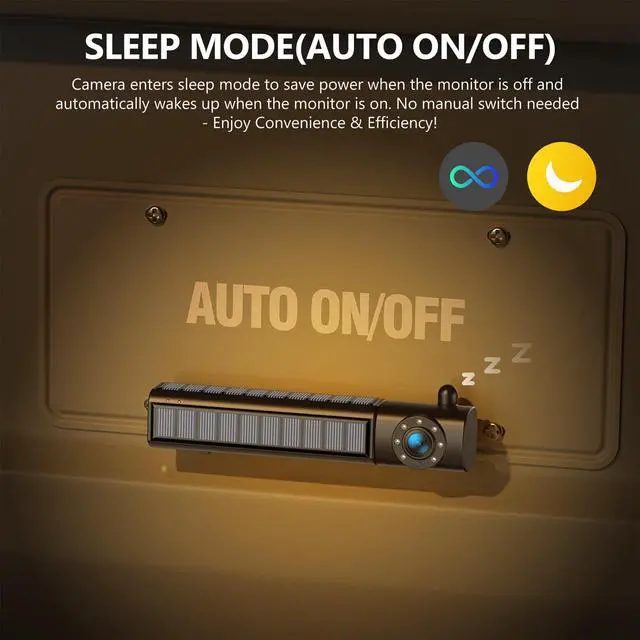 Auto On/Off Camera: Smart sleep mode saves power effortlessly! When the monitor is off, the camera enters sleep mode; when the monitor is on, the camera automatically wakes up. NO MAMUAL SWITCH NEEDED Enjoy convenient and power-saving operation!