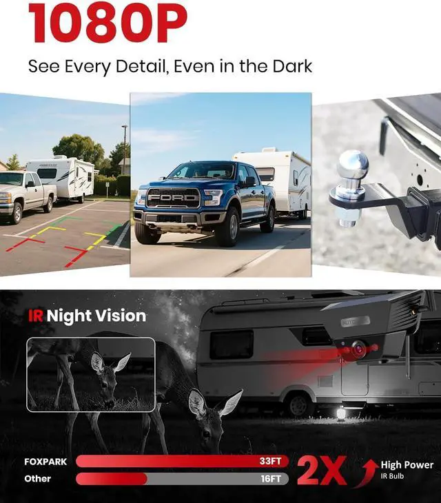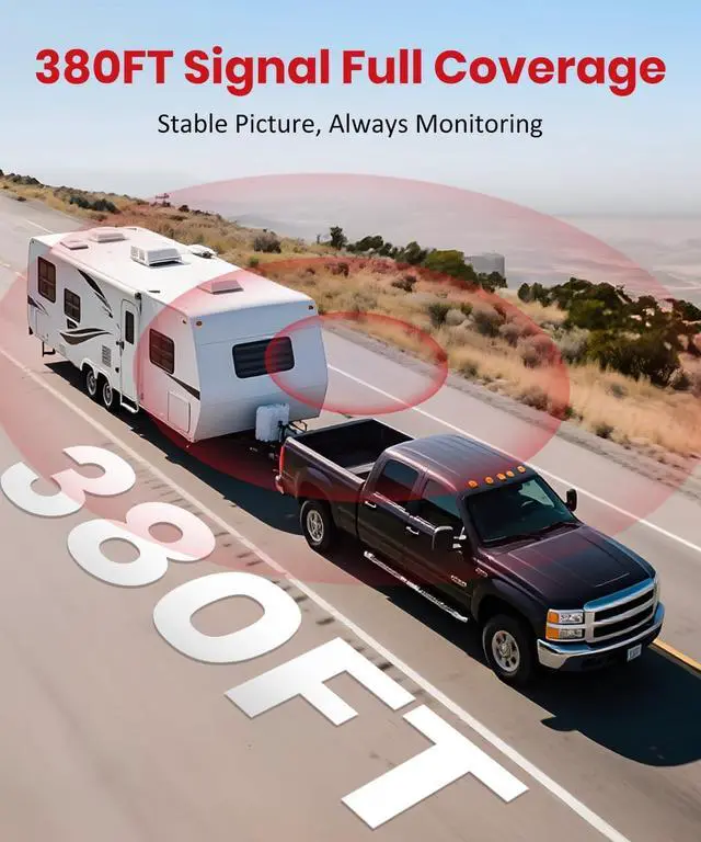 Clear 1080P View for Every Reverse: The wireless trailer camera delivers sharp, bright images whether youre backing out of your driveway or squeezing into a tight spot. Every curb and corner is crystal clear, even at dusk