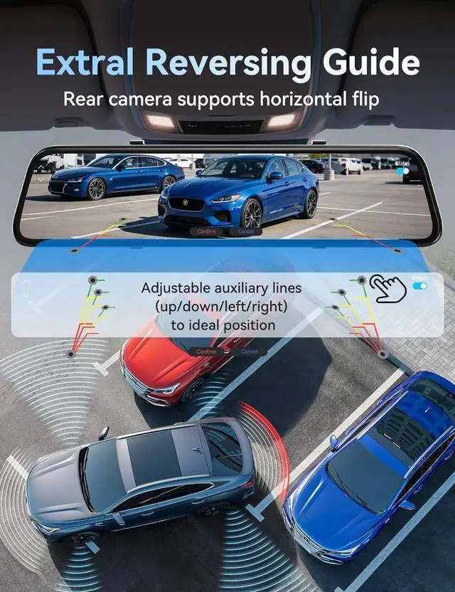 Multiple Driving Assist FunctionsThis mirror dash cam features loop recording, which auto-overwrites unlocked old files when the 64GB card is full for non-stop, hassle-free recording. Built-in G-sensor locks footage instantly upon sudden collisions. Parking assist ensures safe, effortless reversing. 24-hour monitoring detects vehicle abnormalities and triggers auto-recording when parkedNote: Parking monitor cable is sold separately-B0FVRDFMZM