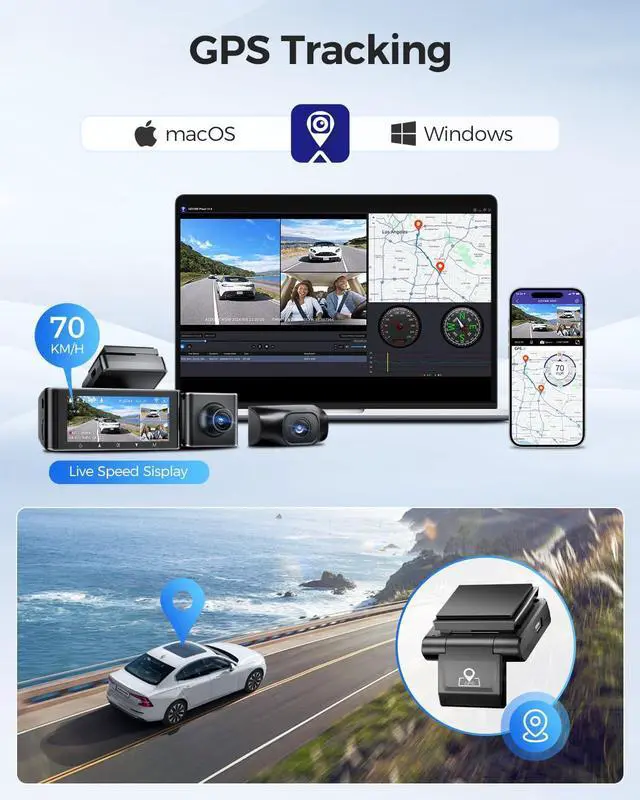 Built-In GPS: An integrated GPS enables precise driving route recording with speed and location data, helping create reliable emergency video evidence when reviewing incidents